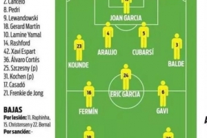 体育资讯4月11日讯 北京时间周日凌晨的西甲第31轮比赛,巴萨将在诺坎普迎战德比队史西班牙人。本场比赛之前,《每日体育报》对巴萨首发阵容进行了预测。由于下周中还有对阵马竞的欧冠1/4决赛次回合比赛,弗里克预计会大幅轮换,巴德吉、奥尔莫和费兰·托雷斯组成三叉戟,巴德吉、加维、库巴西出战。