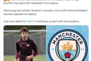 罗马诺写道:“曼城正式签下苏格兰天才球员基尔·麦克米金,后者已通过体检,这位来自哈茨俱乐部的年轻才俊将加入曼城的青训项目。1月份的时候我曾报道过这个转会消息。”
