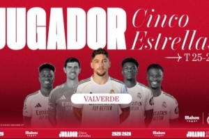 体育资讯3月14日讯 官方消息,巴尔韦德当选皇马2月最佳球员,在评选中击败维尼修斯、库尔图瓦、琼阿梅尼以及卡马文加。