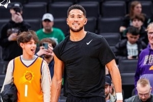 布克穿着的是一双俄勒冈大学的PE配色Book 2 “Oregon” PE,球鞋配色采用了俄勒冈的黄绿色系搭配,同时鞋后跟外侧有俄勒冈大学缩写“OU”。